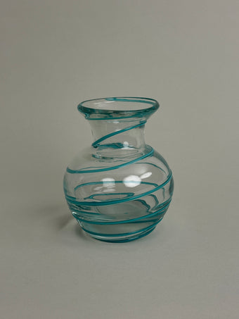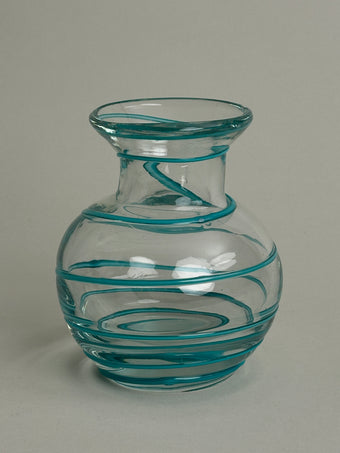 BLOWN GLASS VASE WITH TURQUOISE STRIPES