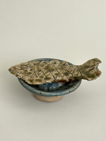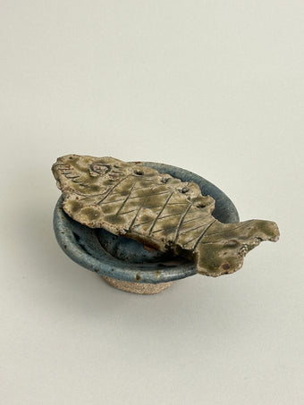 ARTISAN MADE CERAMIC FISH IN BOWL SCULPTURE