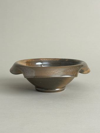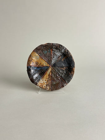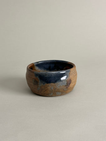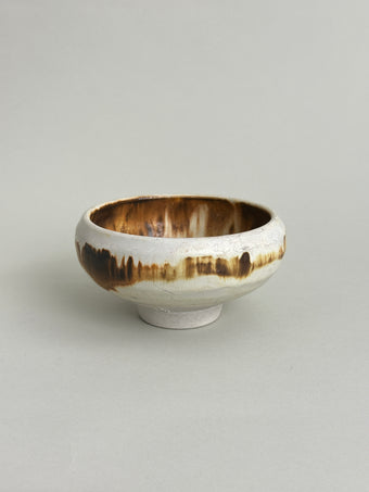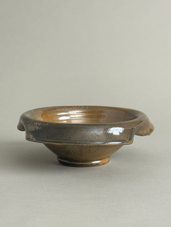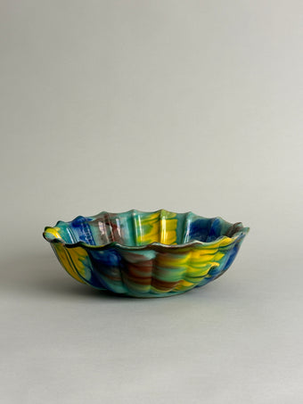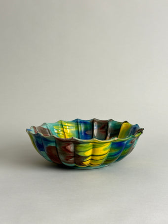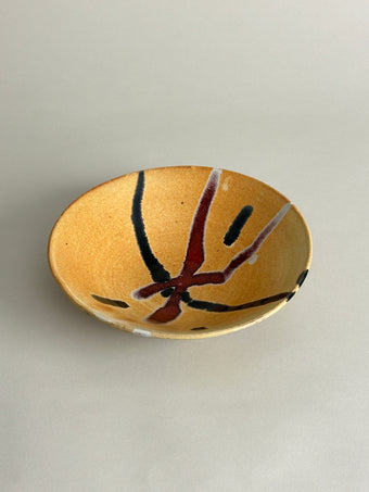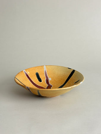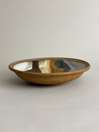 STUDIO POTTERY LOW BOWL WITH UNIQUE GLAZE DESIGN