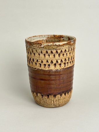 MID CENTURY ARTISAN MADE CERAMIC VASE WITH STRIPES