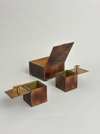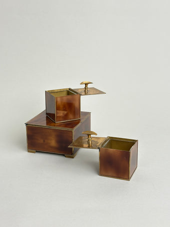 RARE GERMAN BRASS AND TORTOISE SHELL CIGARETTE AND ASH CATCH BOX SET - GES GESCH