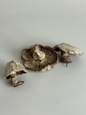 SET OF THREE HANDMADE CERAMIC MUSHROOMS