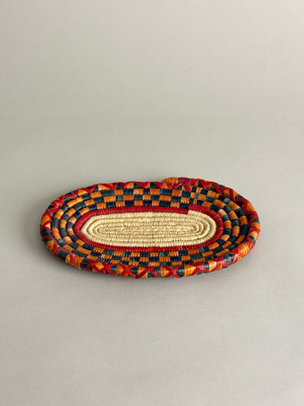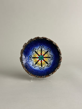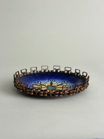 CHILEAN ENAMEL PLATE WITH BRAIDED COPPER EDGING