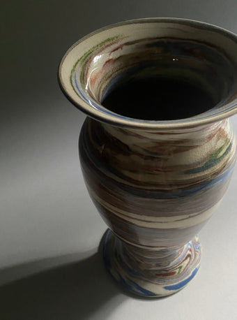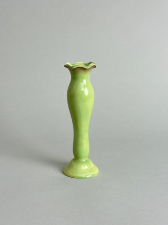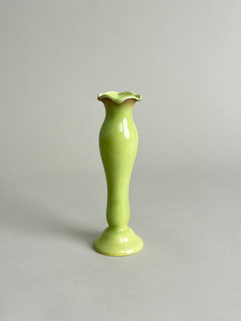 CERAMIC MINTY GREEN STEM VASE WITH SCALLOPED RIM - 1950S
