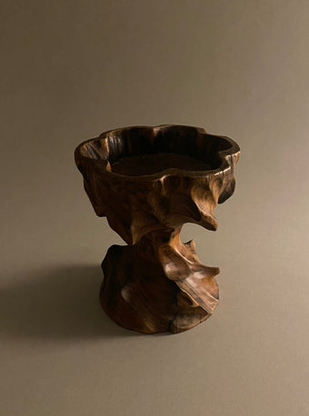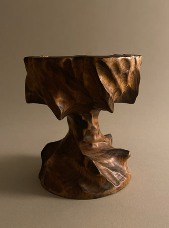 BRUTALIST CARVED WOOD PEDESTAL DISH 1970s