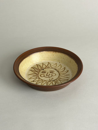 STUDIO POTTERY LOW BOWL WITH UNIQUE GLAZE DESIGN